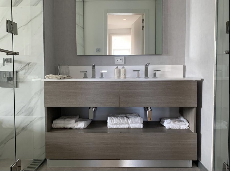 MUEBLES DE BAÑO CON DISEÑO ITALIANO CONTEMPORÁNEO, DOBLE BACHA EN BAÑO PRINCIPAL, INODORO Y BIDET DE PRIMERA CALIDAD, REVESTIMIENTOS DE PAREDES Y PISOS EN PORCELLANATO. BAÑOS PRINCIPALES CON CUARTO DE BAÑERA Y DOBLE DUCHA INDEPENDIENTE. GRIFERÍAS DE ALTÍSIMA PERFORMANCE.