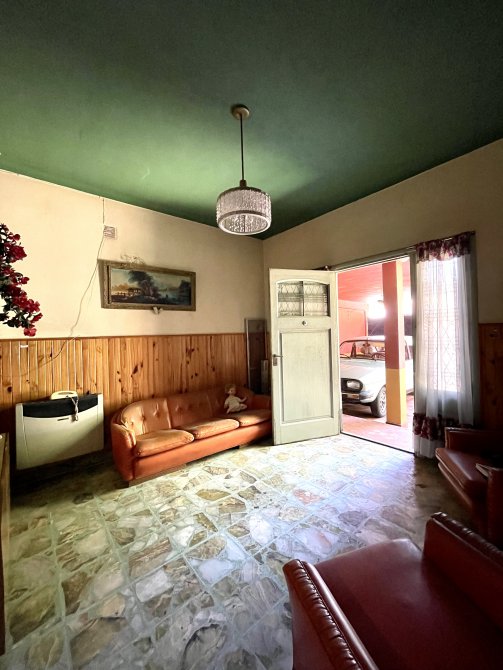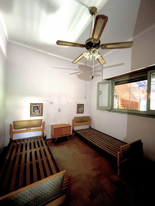 Casa antigua pero muy bien conservada, tiene cochera cubierta al frente, ingresas por la puerta principal y nos encontramos con un living + dos Habitaciones con piso pinotea.
