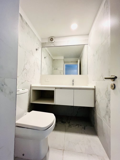 Ingresamos al living comedor muy moderno, todos los ambientes muy luminosos, posee 3 habitaciones de las cuales la principal tiene baño en suite, más un baño en el pasillo y cercano al living hay un toilette.