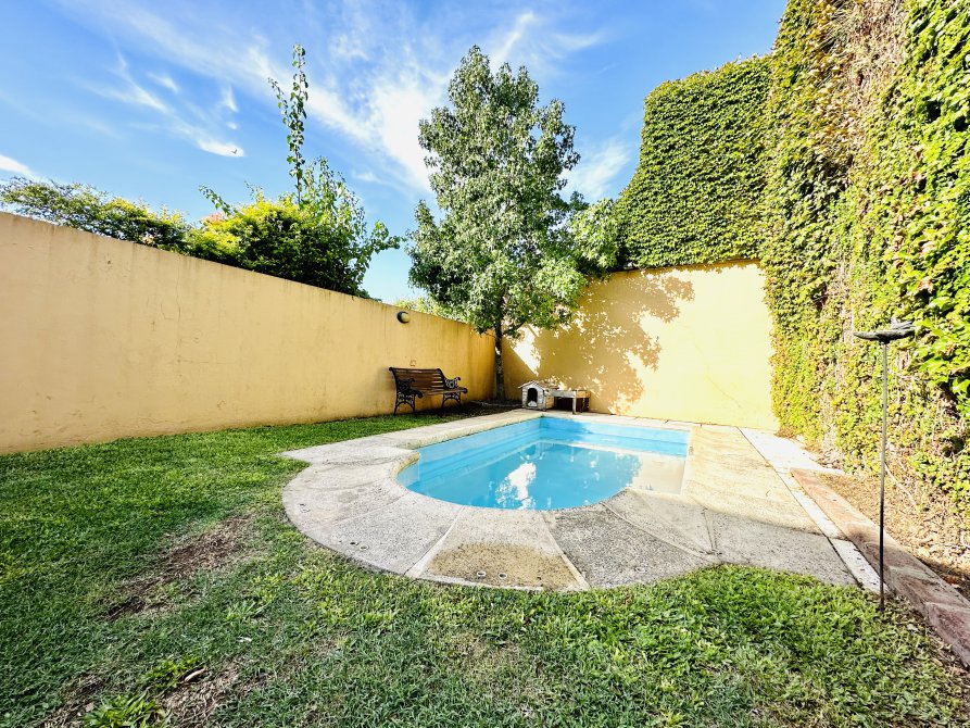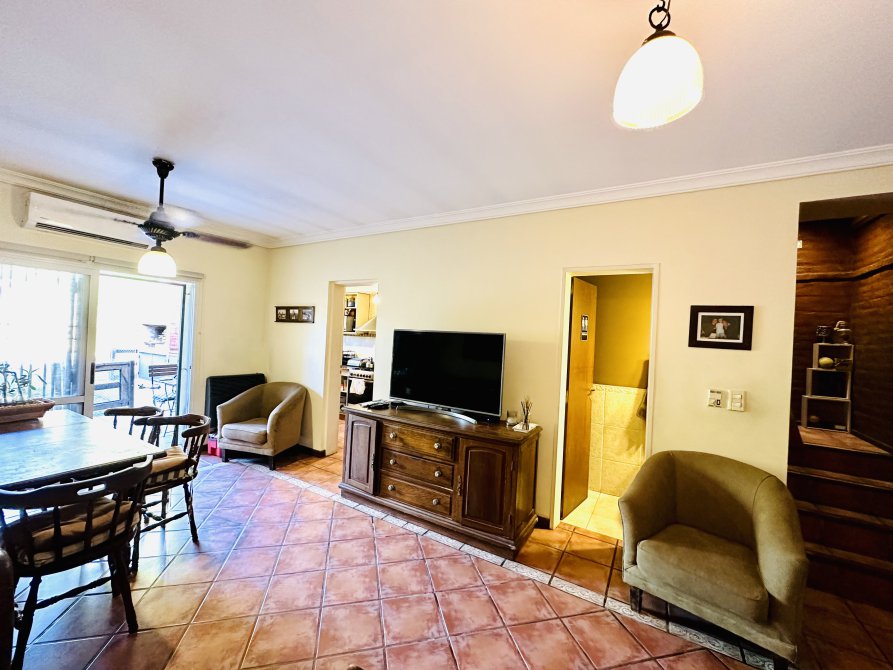 Tenemos una salida lo que es el fondo de la propiedad, con espacios verdes, pileta, parrilla y sol todo el dia.