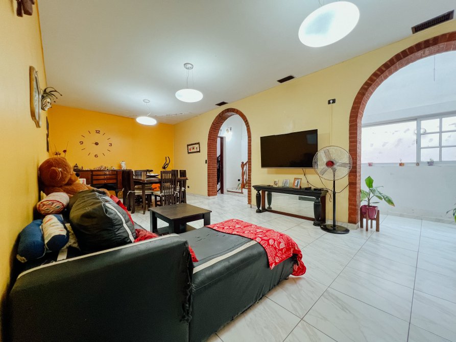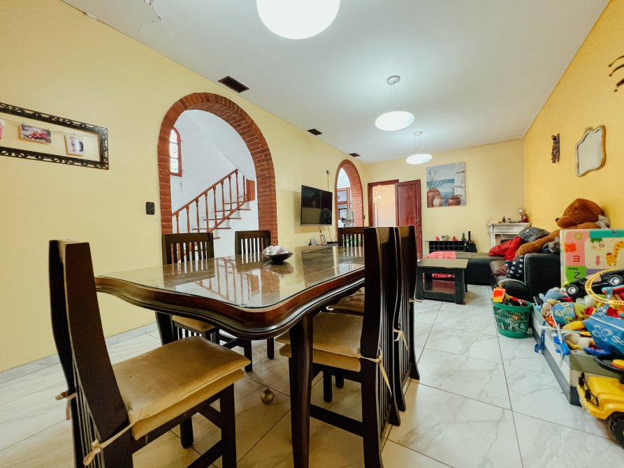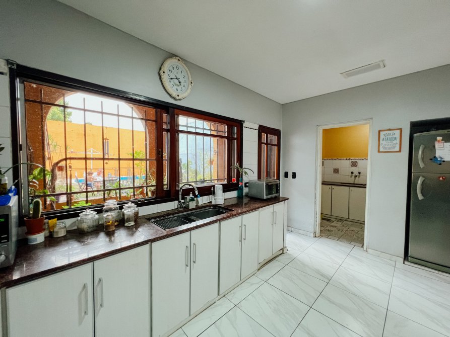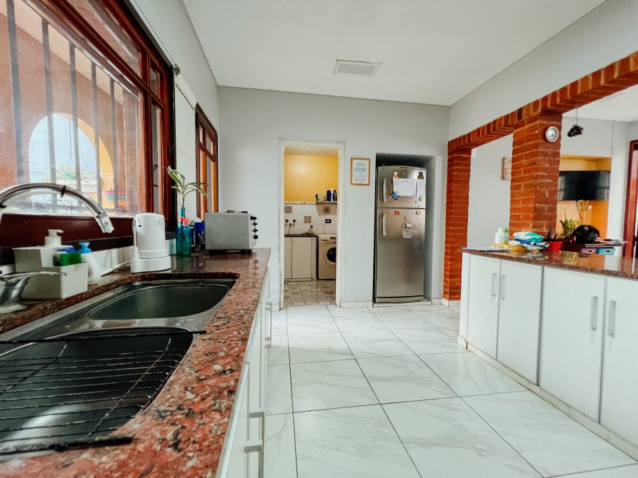 Su ubicación privilegiada y ambientes super amplios lo hacen ideal para una familia grande que busca comodidad y tranquilidad.Al entrar, te encontrarás con un jardín al frente y una cochera para 3 autos que brindan seguridad y tranquilidad. Al ingresar a la propiedad, el hall de ingreso te llevará a un living de recepción al frente, un segundo living comedor con baño de cortesía, cocina totalmente equipada con amoblamiento bajo mesada en "U" y desayunador, comedor de diario, lavadero amplio y despensa.