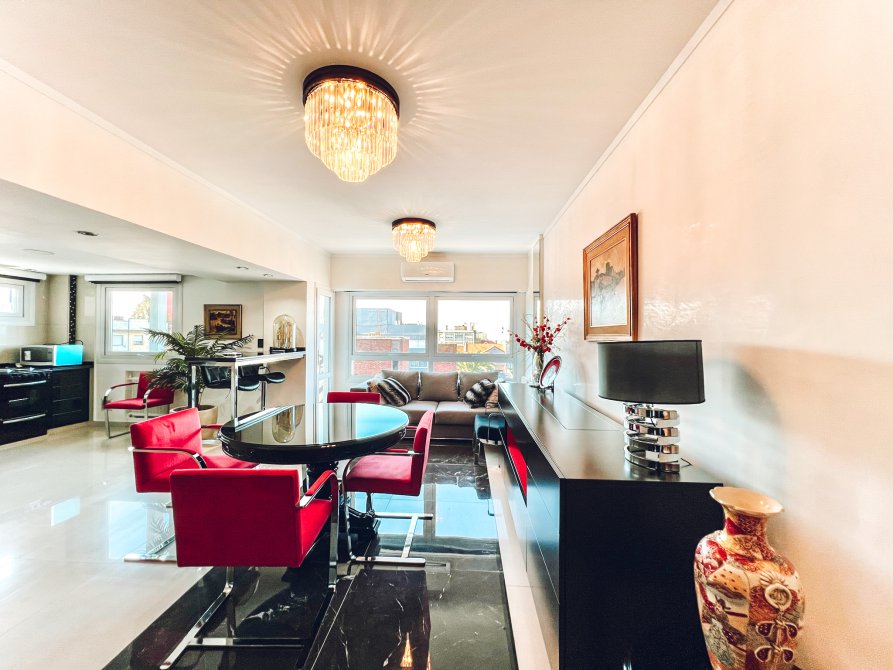 Ubicado en el sexto piso de un edificio en 9 de Julio, casi en la costa, este semipiso se reciclado en su totalidad con materiales y artefactos de calidad.