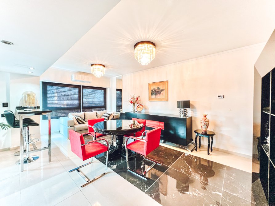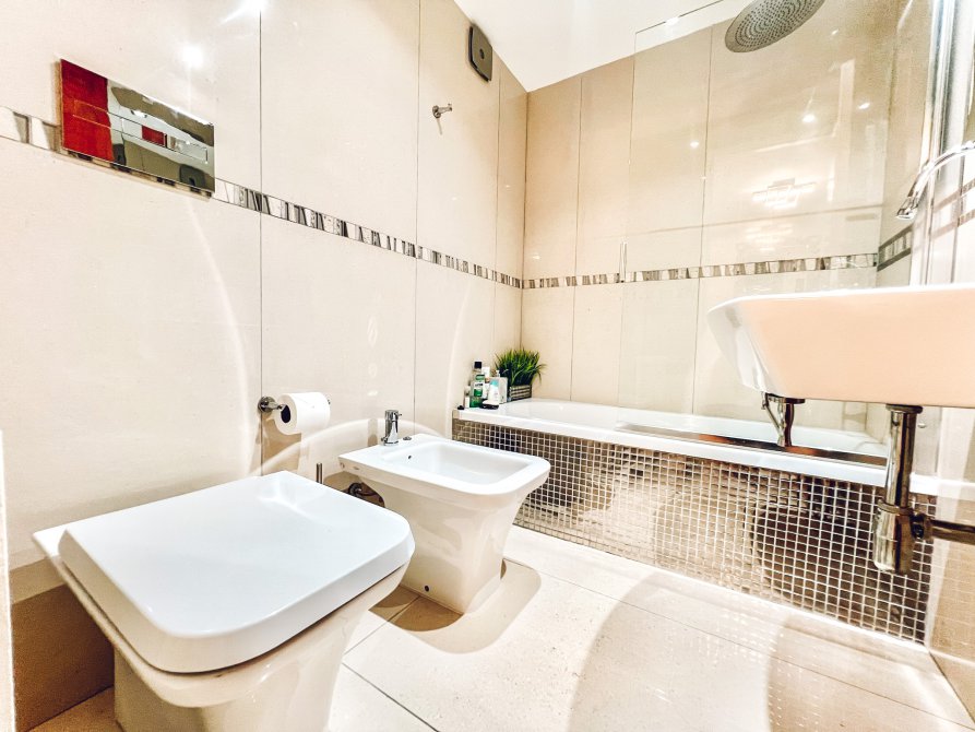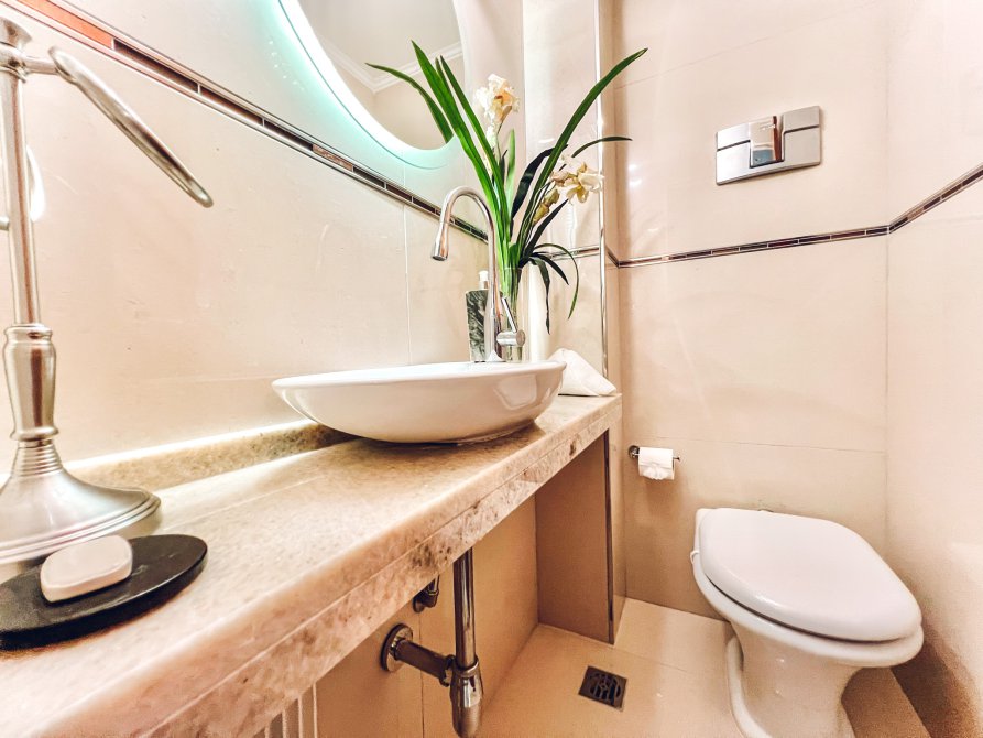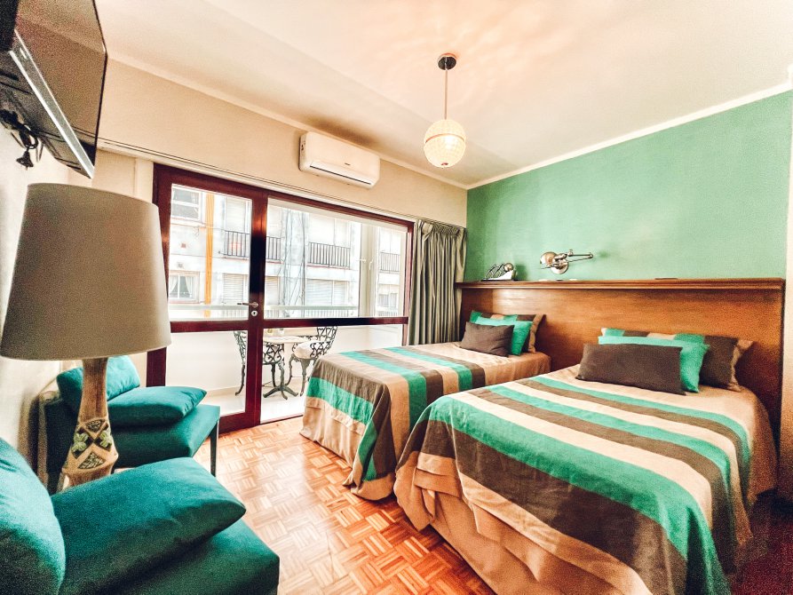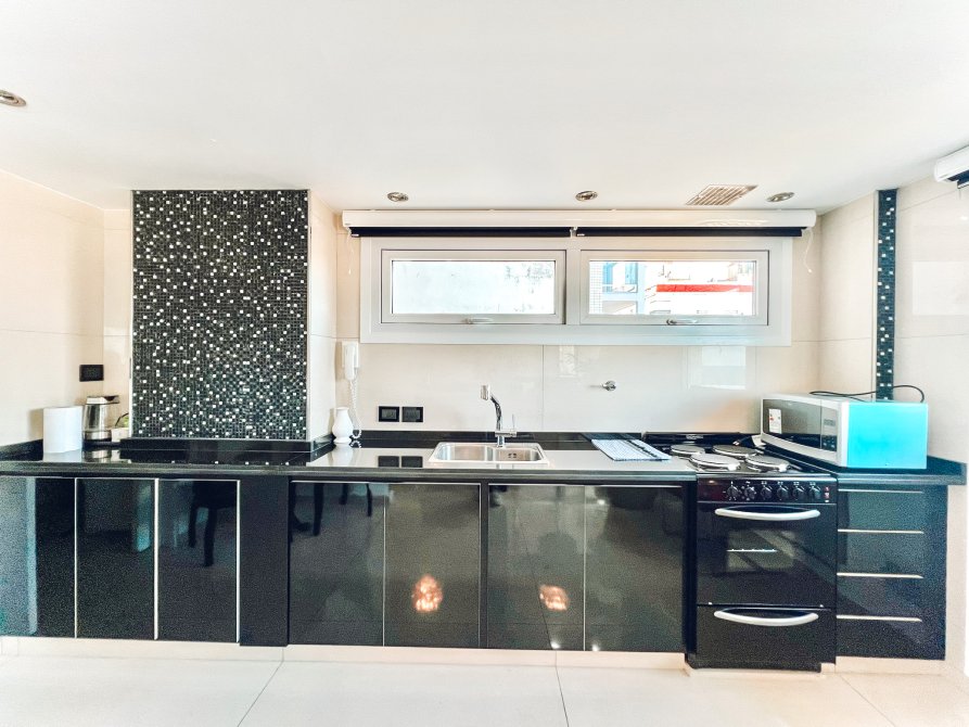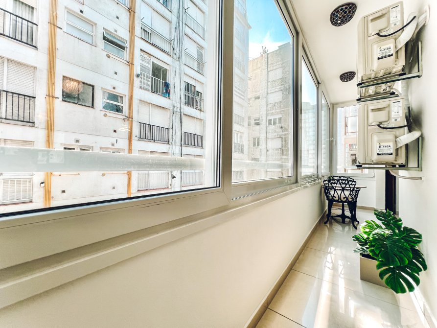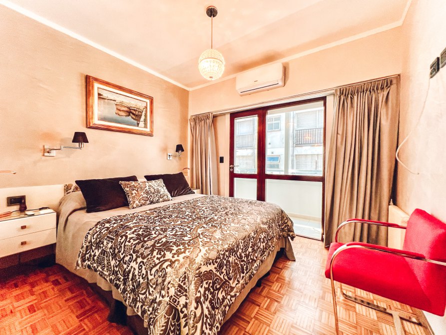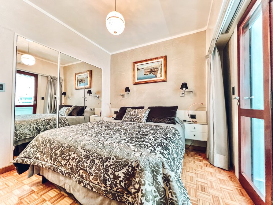 Dos dormitorios cuentan con amplio balcón corrido con cerramiento a contrafrente. El baño completo con bañera y revestimientos en porcelanato está decorado con pintura estuco en toda la propiedad, técnica que permite obtener texturas parecidas a las de mármol y piedra natural. Todos los placares tienen frente de espejo para darle aún más amplitud a los ambientes.