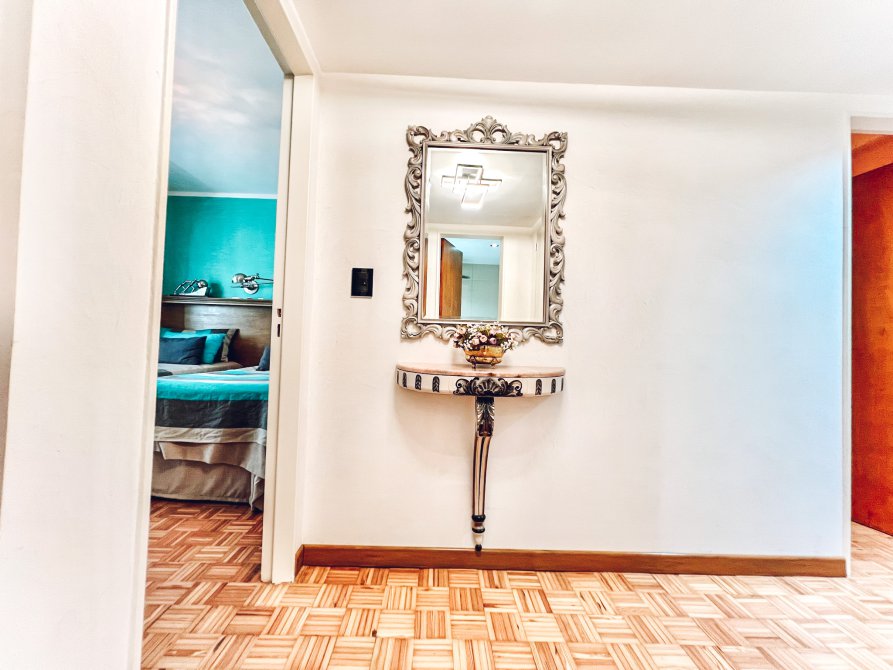 El hall distribuidor con dos placares separa la zona privada con 3 cómodos dormitorios con placares, pisos de parquet y cortinas eléctricas en todas las aberturas.