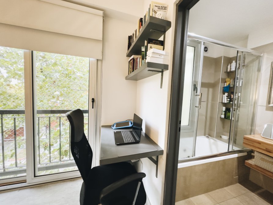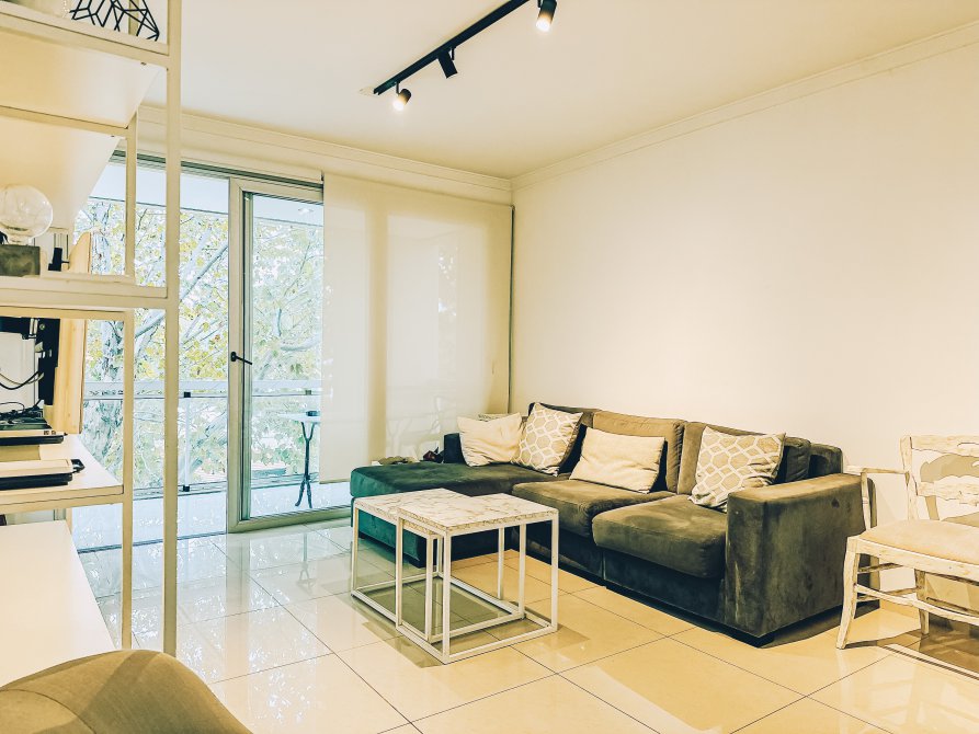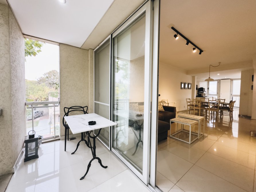 El departamento cuenta con un hermoso living comedor con pisos de porcelanato y un cómodo balcón donde podrás disfrutar de las vistas y el aire fresco de la zona. La cocina integrada, cuenta con muebles altos y bajos mesada, doble bacha de acero y artefacto de cocina. El dormitorio, con placard y con interiores, además tiene acceso a una terraza de uso exclusivo, perfecta para disfrutar de los días de sol.