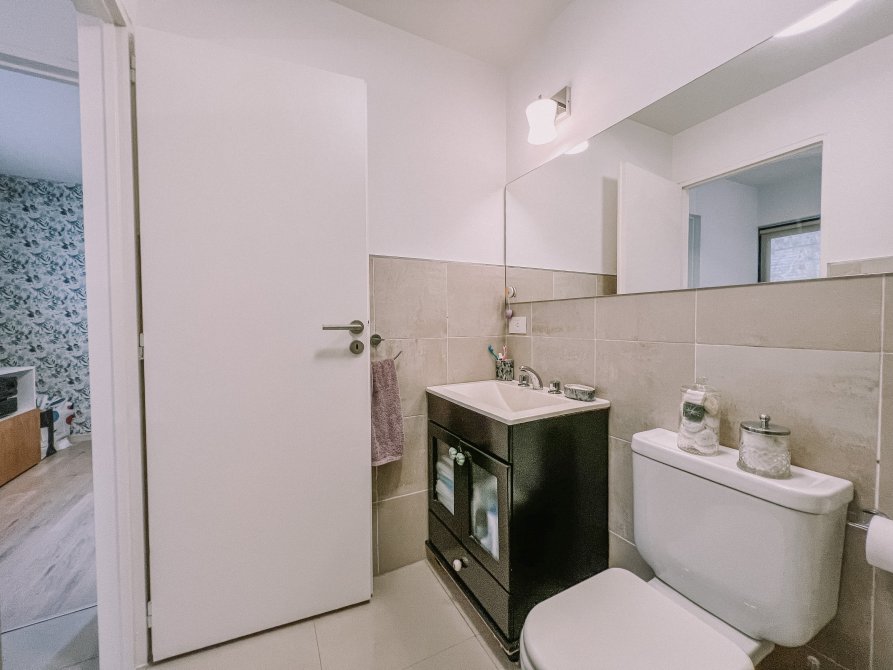 En la planta alta, se encuentran los dos dormitorios muy luminosos con placares que brindan un amplio espacio de almacenamiento, y un baño completo que cuenta con todas las comodidades necesarias.