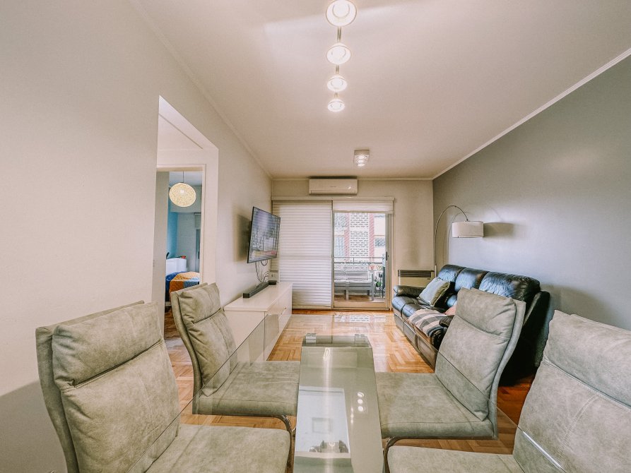 El departamento se encuentra en un excelente estado de conservación, lo que asegura una vida cómoda y sin preocupaciones. Además, es muy luminoso, permitiendo que la luz natural se filtre a través de las ventanas y brinda una calidez muy notable a la propiedad.