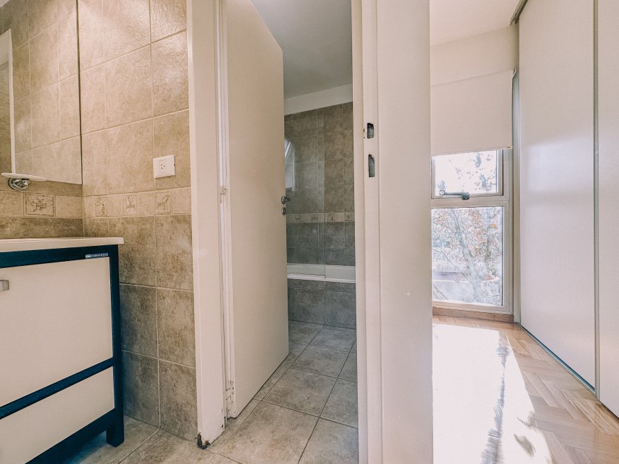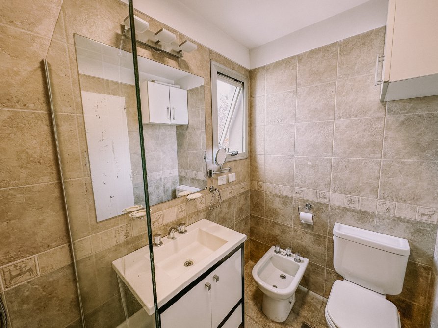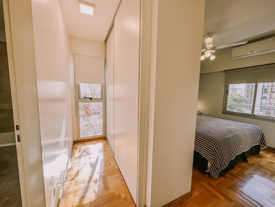 El departamento cuenta con dos dormitorios. El primer dormitorio cuenta con un placard integrado y salida al balcón, brindando comodidad y acceso a la luz natural. El baño completo se encuentra en el pasillo, facilitando el acceso desde cualquier punto del departamento. El segundo dormitorio en suite, cuenta con un vestidor, brindando un amplio espacio de almacenamiento para la ropa y accesorios.