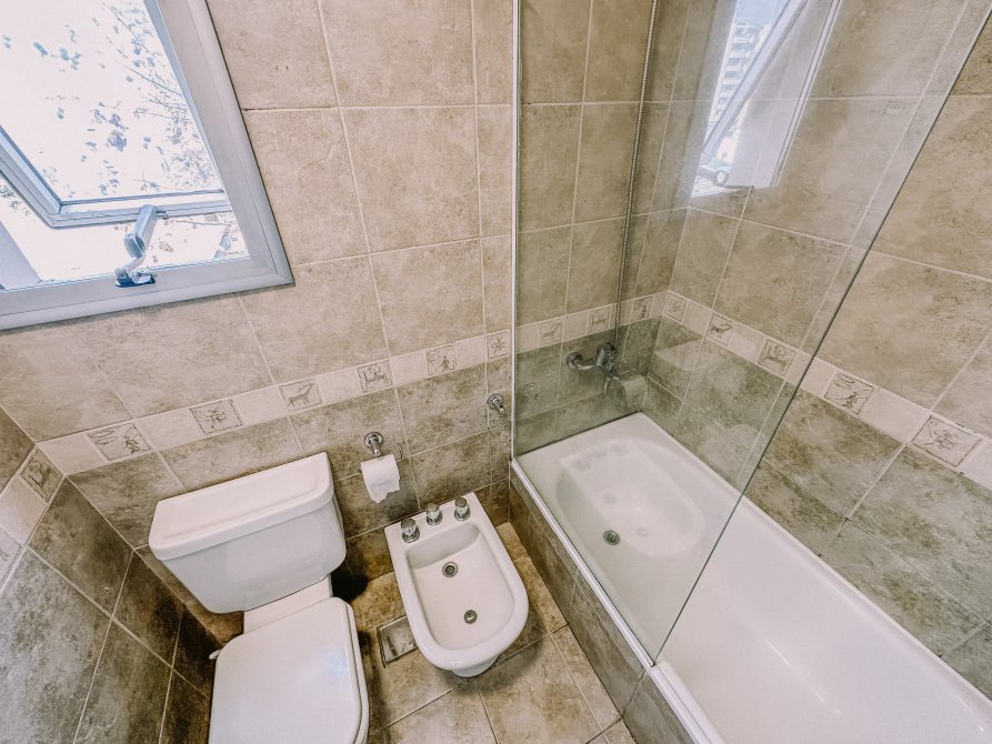 El departamento es un elegante y espacioso espacio de 3 ambientes con características destacadas. Al ingresar, se encuentra un palier privado brindando mayor privacidad y exclusividad. El living comedor cuenta con pisos de parquet y acceso directo al balcón, permitiendo disfrutar de una agradable vista al exterior. La cocina comedor está equipada con muebles de alacena y bajo mesada, ofreciendo un amplio espacio de almacenamiento.
