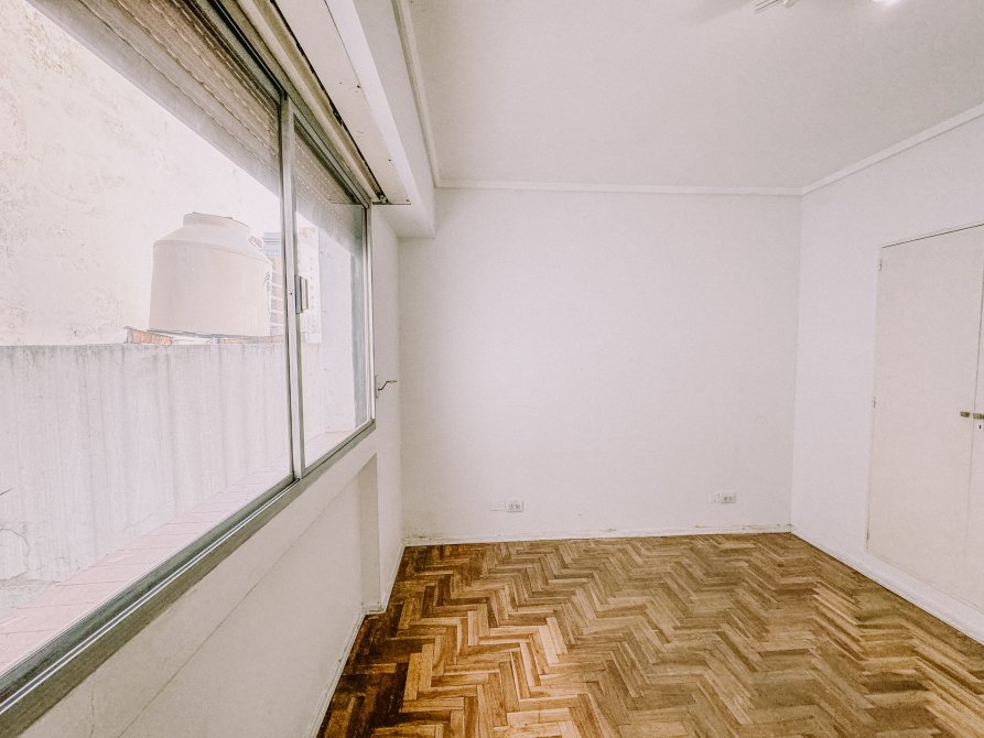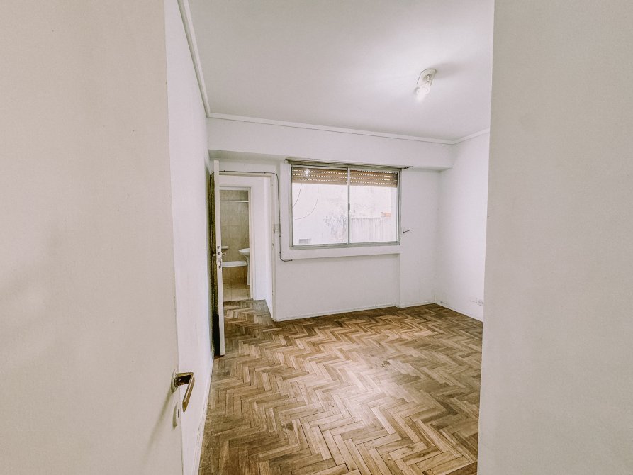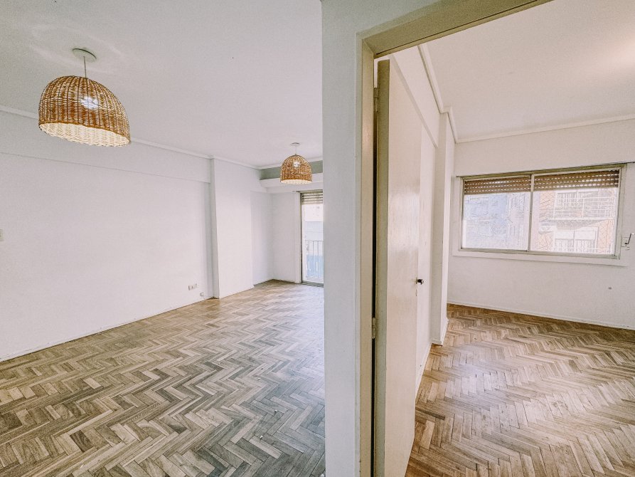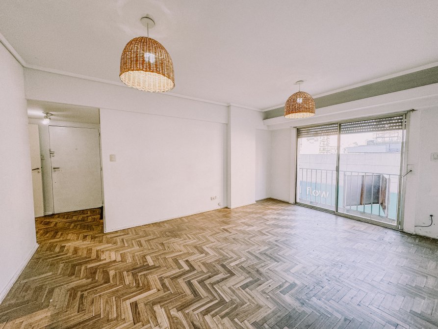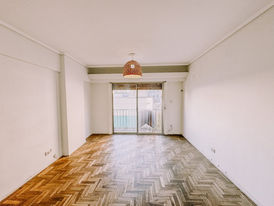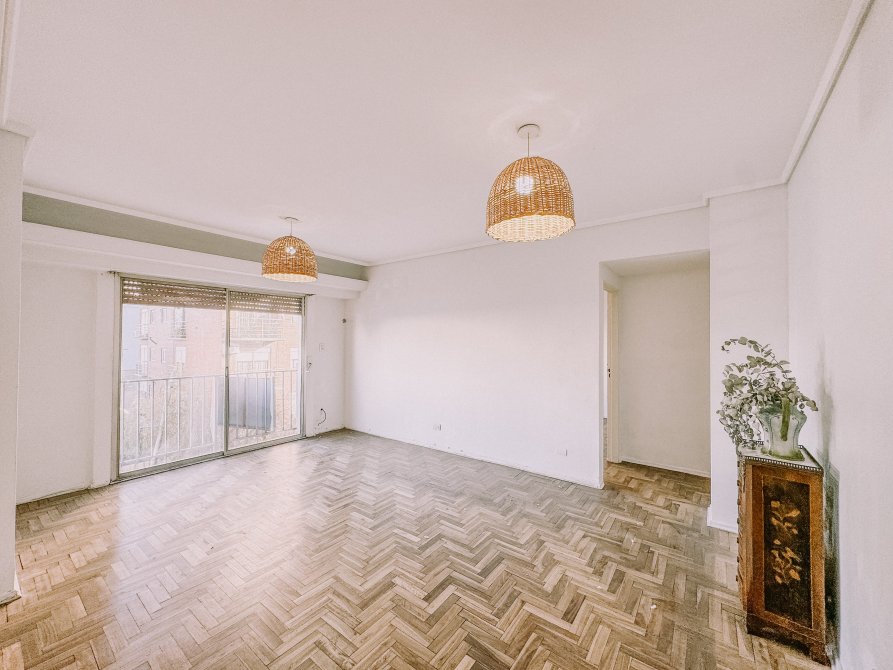 · Gran living comedor con pisos de parquet en muy buen estado y amplio ventanal con salida a balcón francés