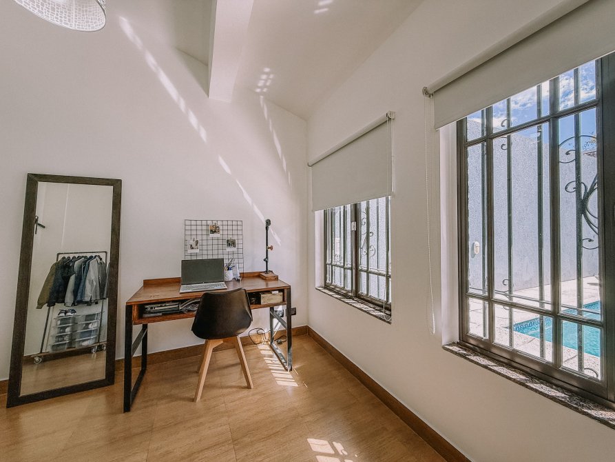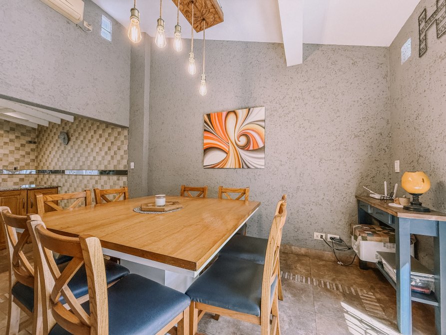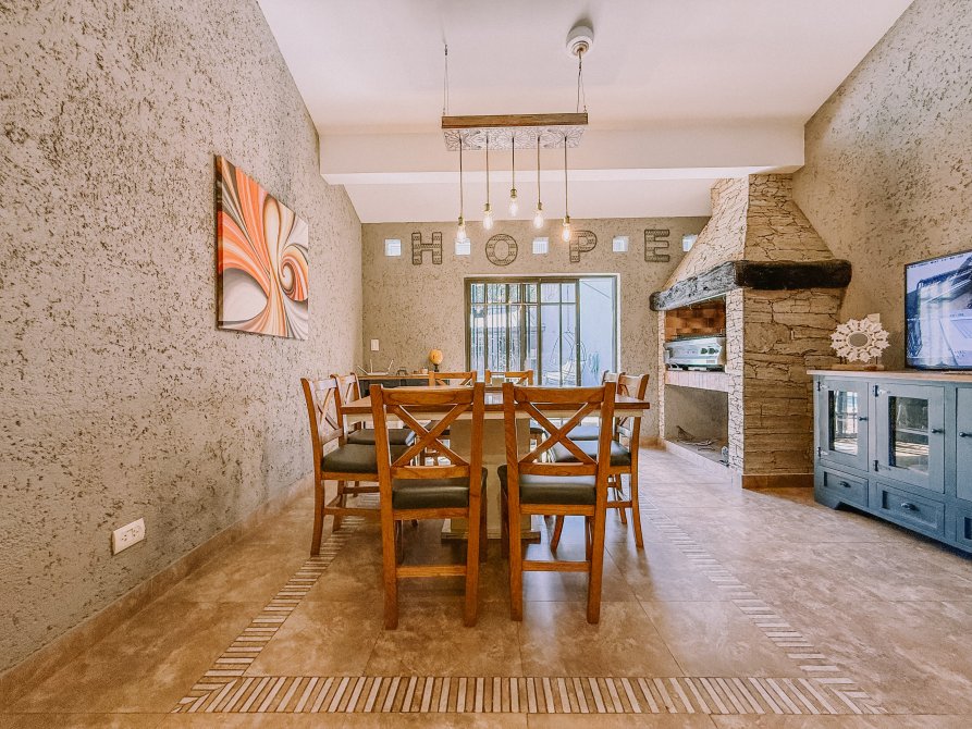 En la parte trasera de la propiedad, el fondo parquizado se convierte en un excelente lugar de disfrute, con una pileta climatizada ideal para aprovechar durante gran parte del año. Además, el quincho con baño propio brinda el entorno perfecto para reuniones y celebraciones, sumando comodidad y funcionalidad a la propuesta.