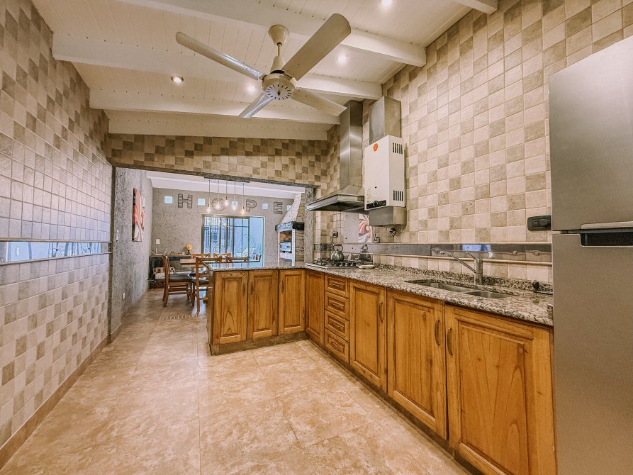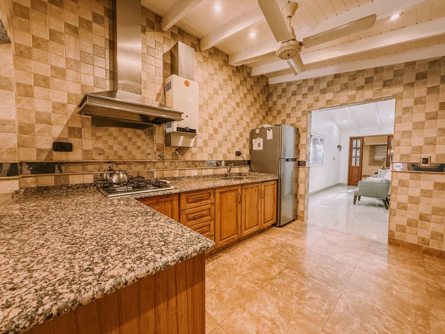 La cocina comedor se encuentra equipada con parrilla a gas, ideal para disfrutar de comidas en familia o con amigos. A continuación, el lavadero independiente ofrece espacio para lavarropas y secarropas, aportando practicidad a la rutina diaria.