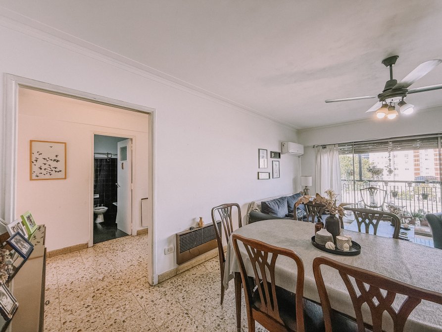 El gran living comedor es ideal para recibir visitas o disfrutar en familia, y tiene salida directa a un balcón corrido que aporta luz y ventilación natural.