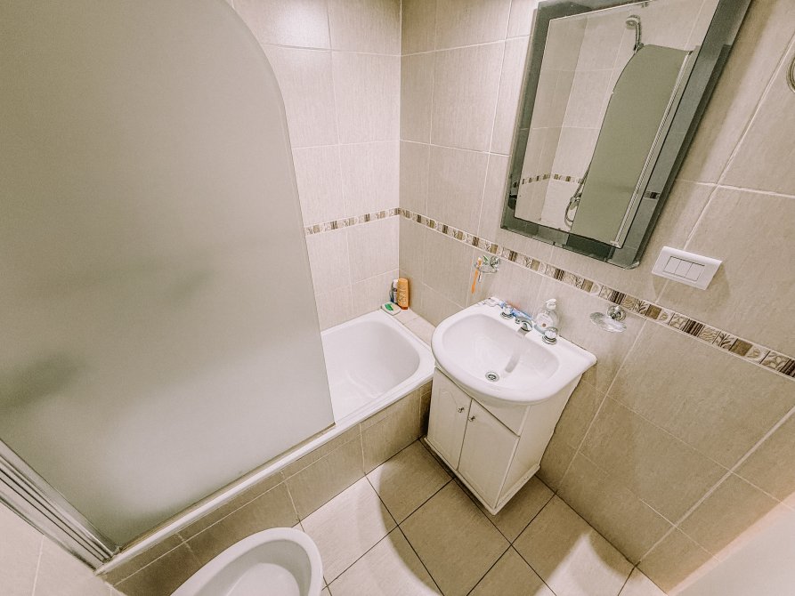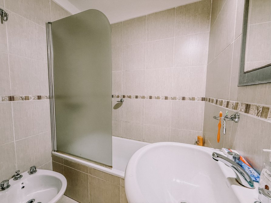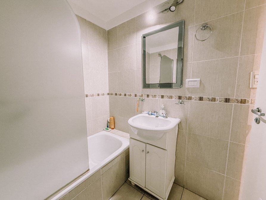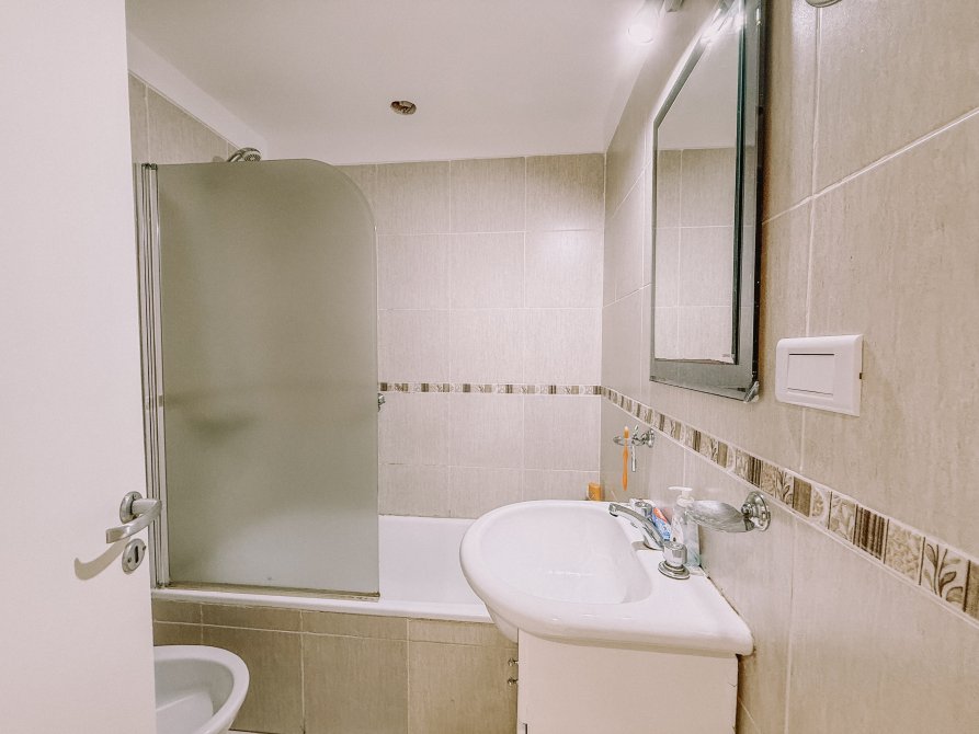 - Baño completo con bañera, revestimientos modernos y ventilación adecuada.