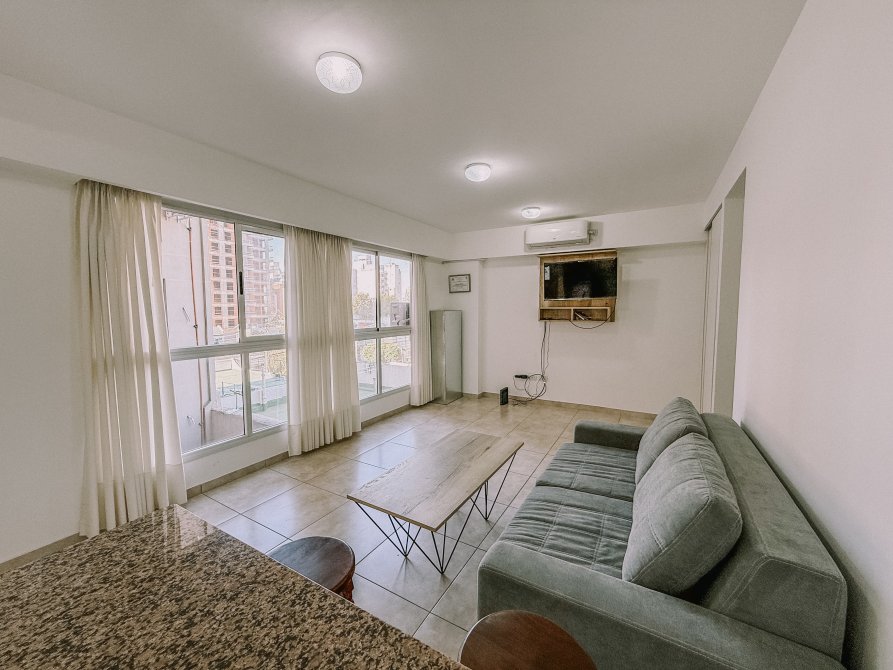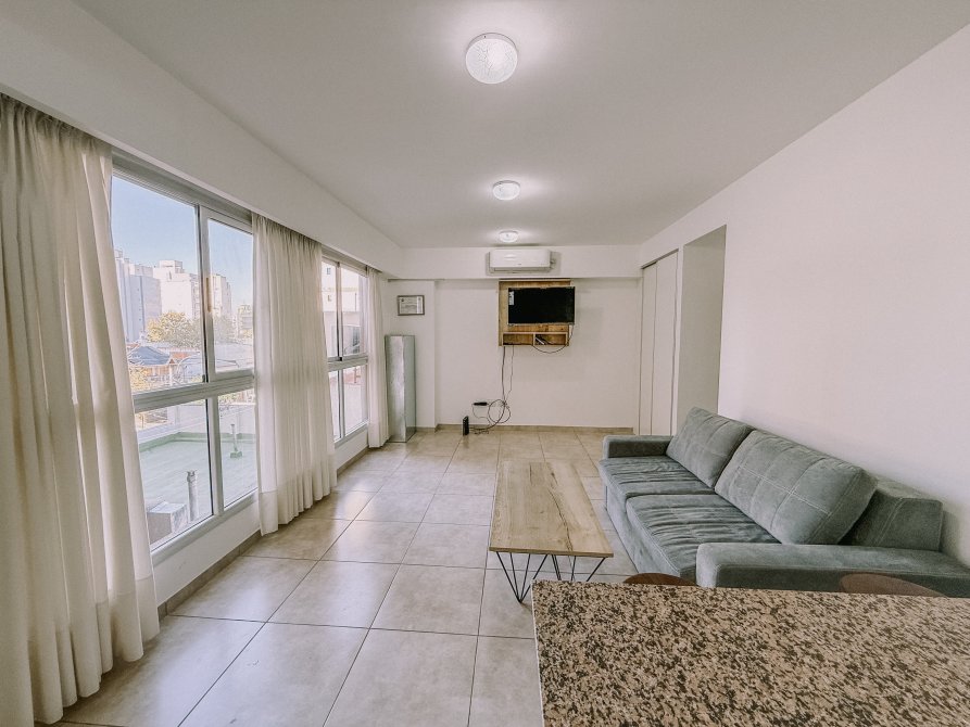 Al ingresar al departamento, nos recibe un ambiente amplio y abierto, con varias ventanas que inundan el espacio de luz natural, generando una atmósfera cálida y acogedora.