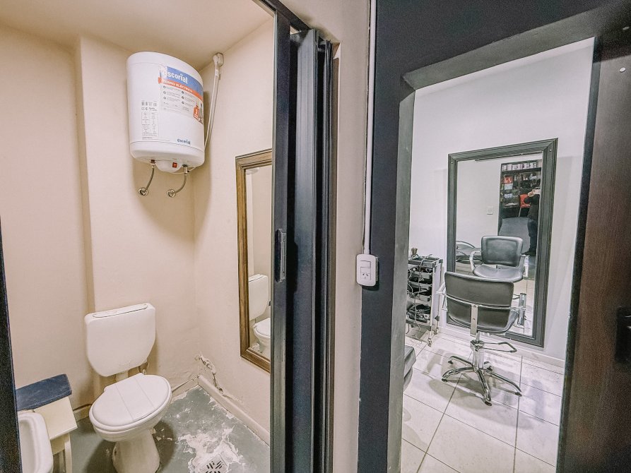 Local comercial con ingreso independiente, cortina eléctrica, baño y espacio de guardado.