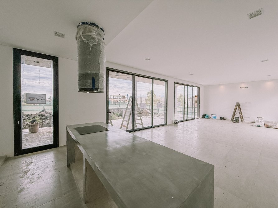 Amplio living comedor integrado con cocina moderna y gran isla central