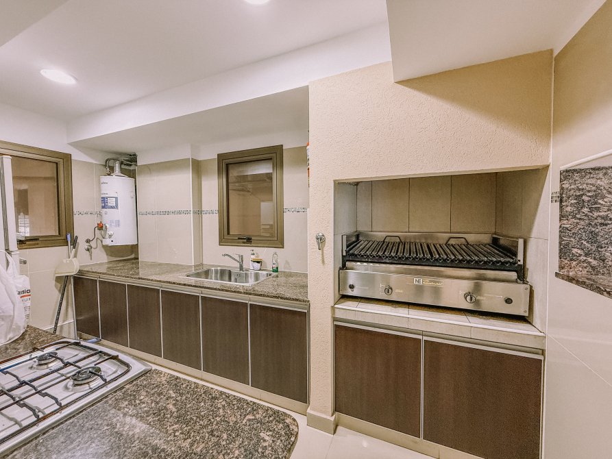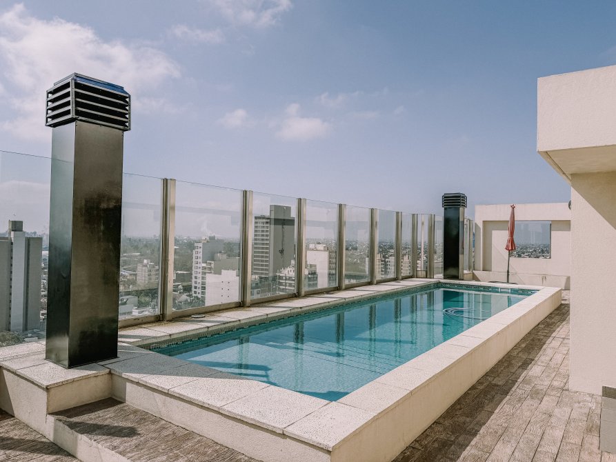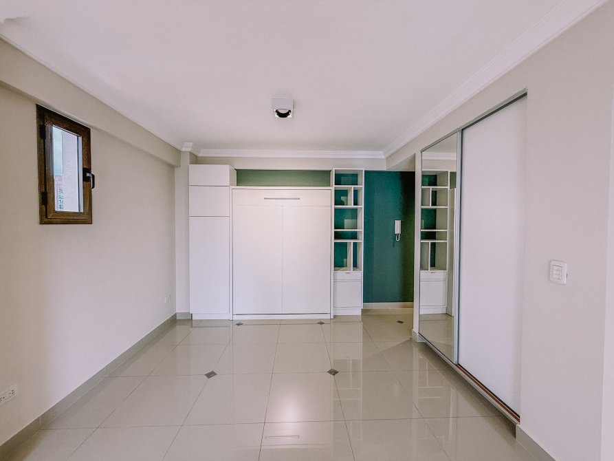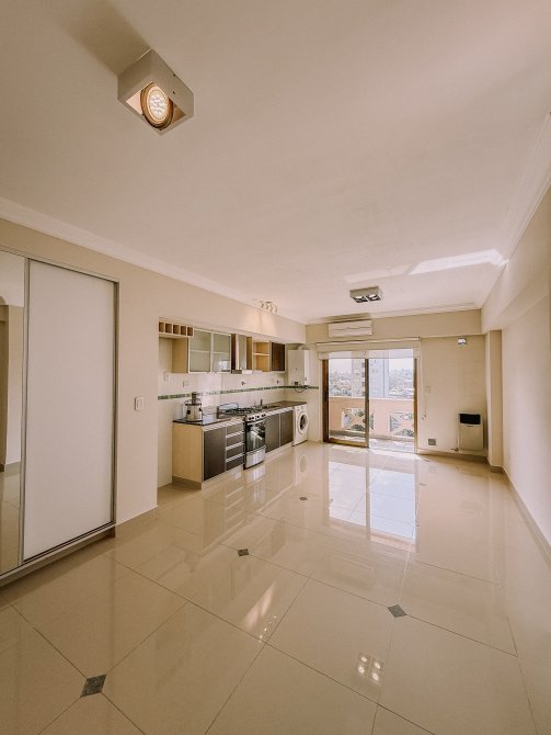 La unidad se encuentra en el 4° piso contrafrente, con un ambiente amplio y muy luminoso, balcón con vista abierta, pisos de porcelanato, cocina equipada con muebles altos y bajos, placard empotrado con frente espejado y un baño completo de excelente calidad.