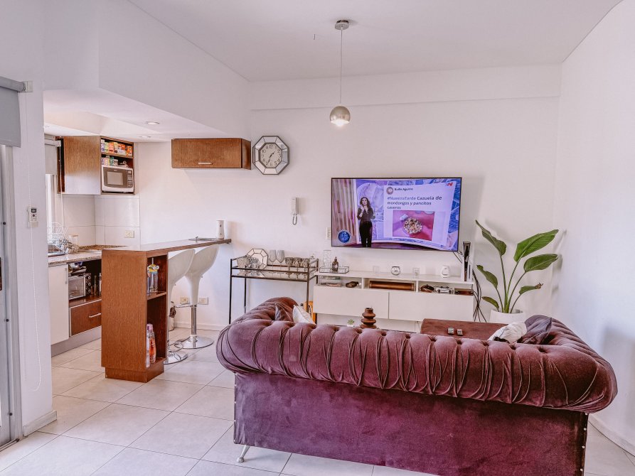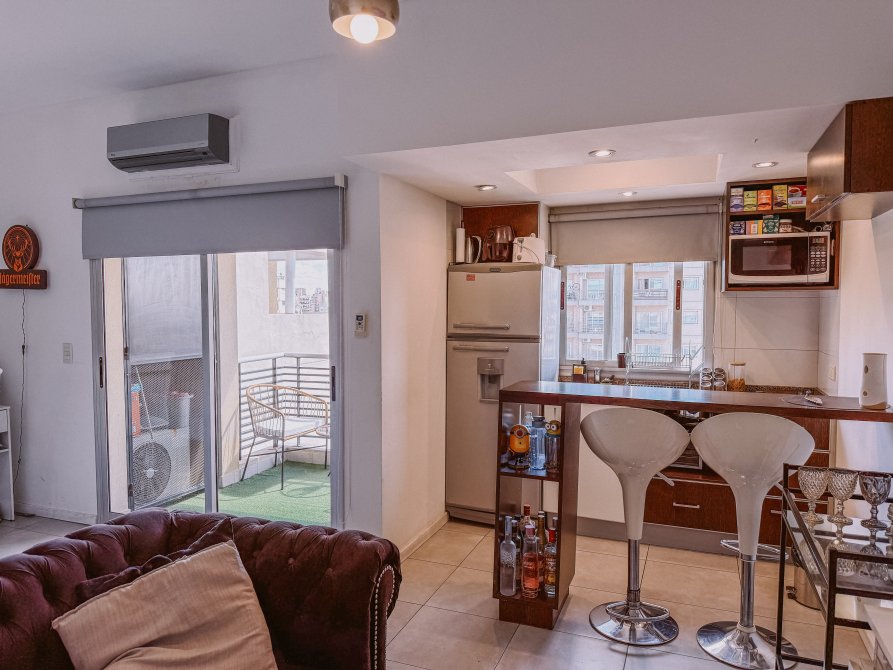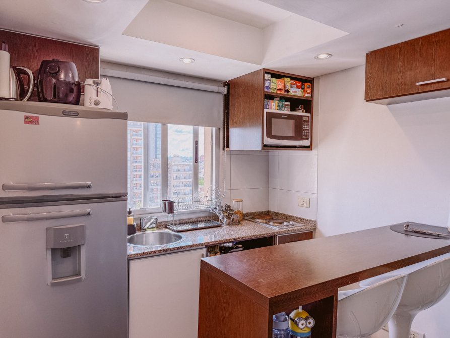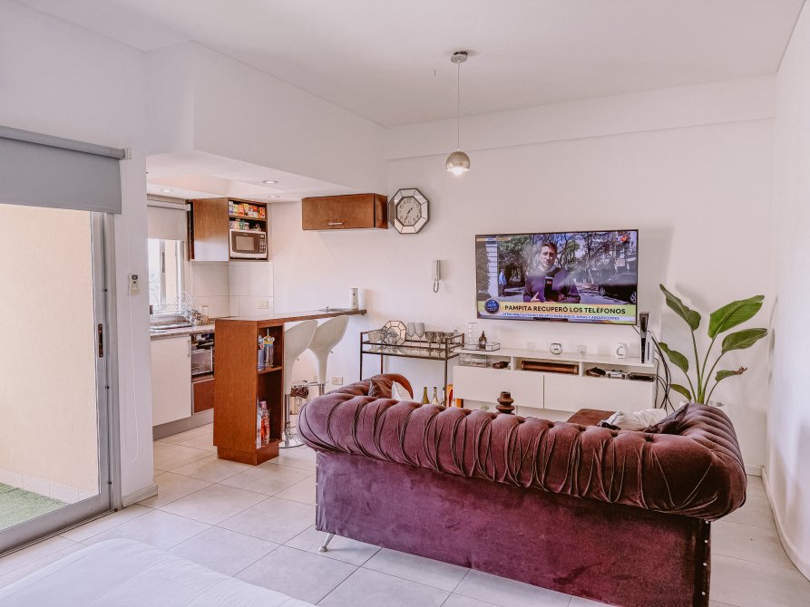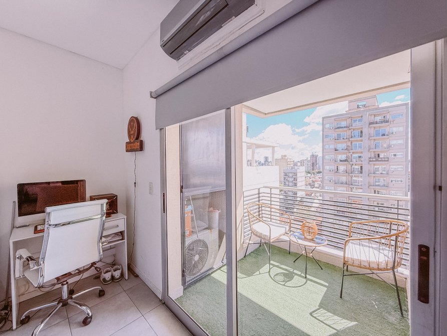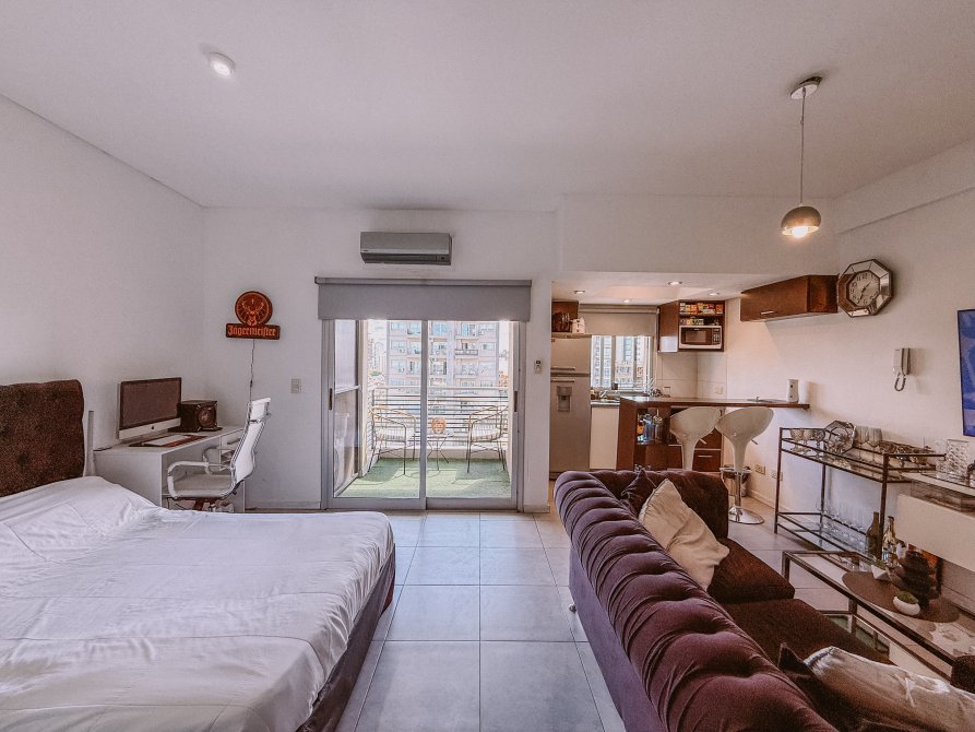 La unidad cuenta con 33 m² totales distribuidos en un ambiente luminoso con salida a balcón y inmejorable vista panorámica. Cocina equipada con muebles bajo mesada y alacena, baño completo con bañera, pisos cerámicos de primera calidad y equipo de aire acondicionado frío/calor.