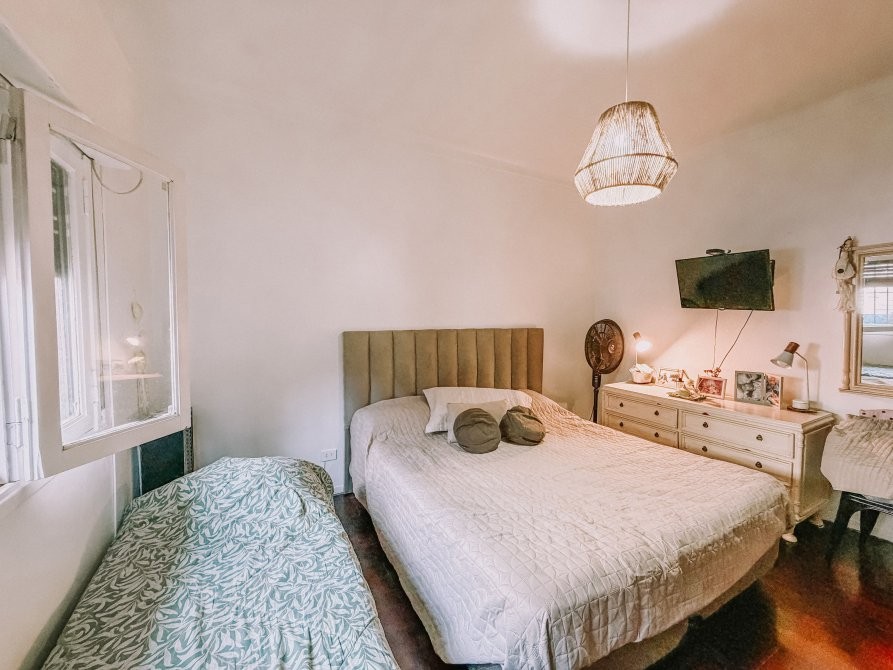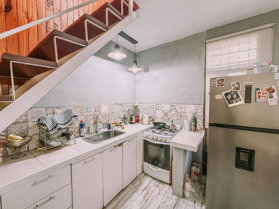Cuenta con cocina comedor, patio propio, baño completo y 3 habitaciones en planta baja, más una habitación adicional y baño en planta alta.