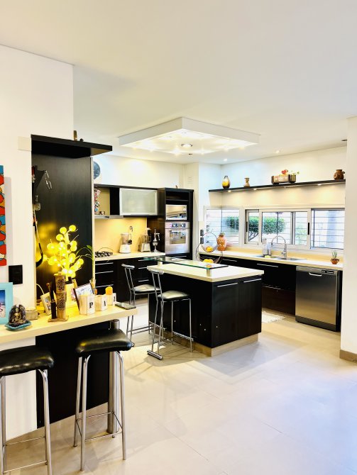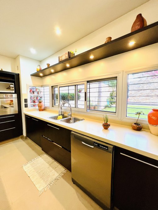 Ingresamos a la cocina comedor, hermoso espacio de esta propiedad con un toilette de invitados.