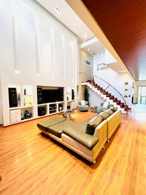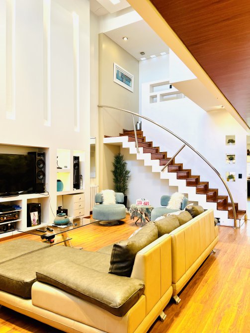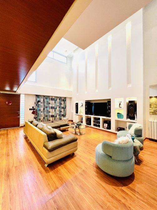 Despues nos encontramos un gran living con sus techos súper alto que lo hace distinto y de muy buen diseño.
