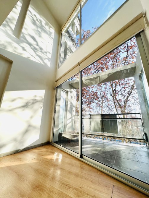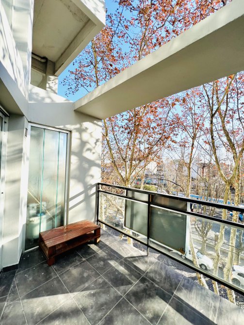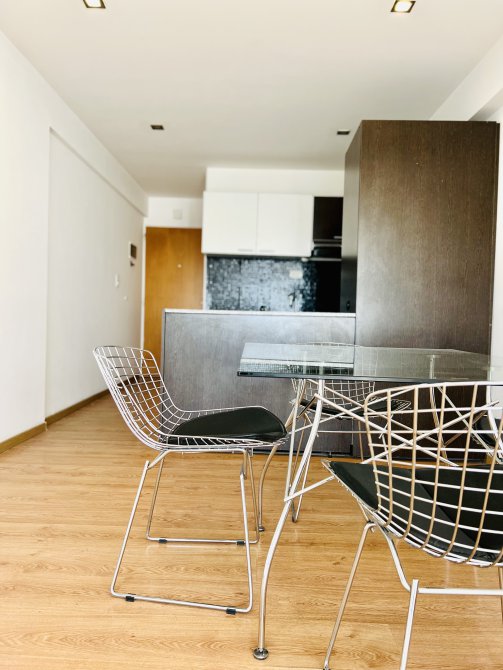 Living comedor moderno con salida a un balcón terraza muy amplió y funcional.