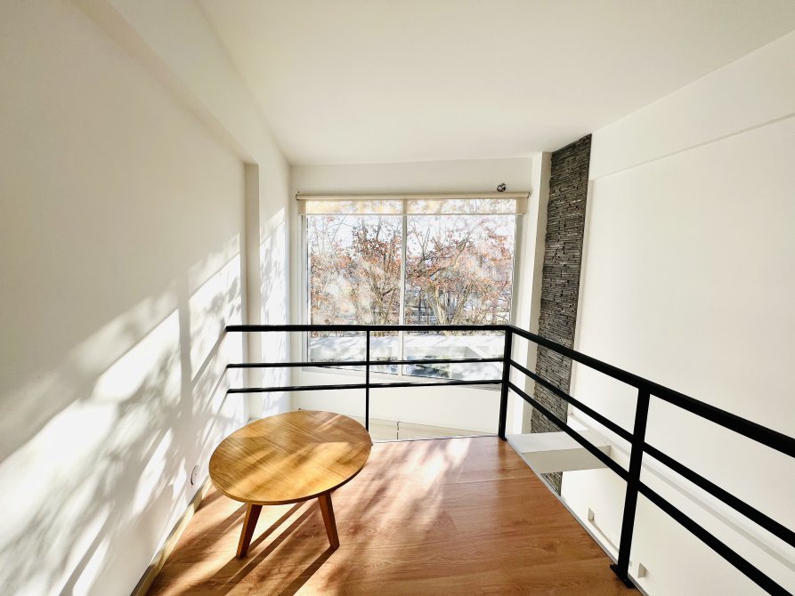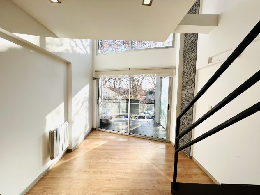 Subimos a la planta alta donde tenemos un espacio entrepiso ideal para utilizarlo como escritorio ya que es departamento es apto profesional.