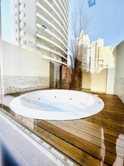 El complejo cuenta con seguridad 24 hs, gimnasio , Spa con jacuzzi, terraza con parrillas y una pileta al aire libre muy amplia con espacios verdes a su alrededor.