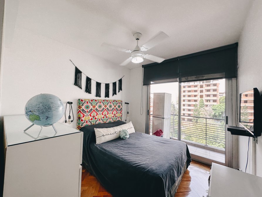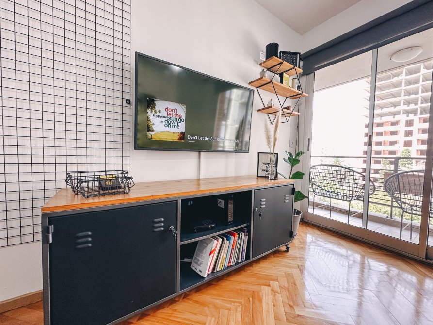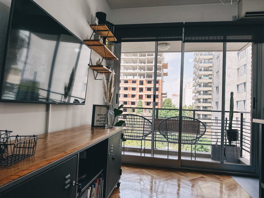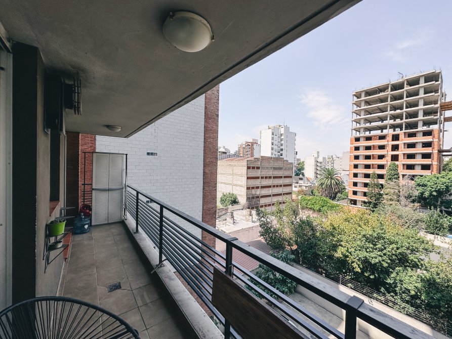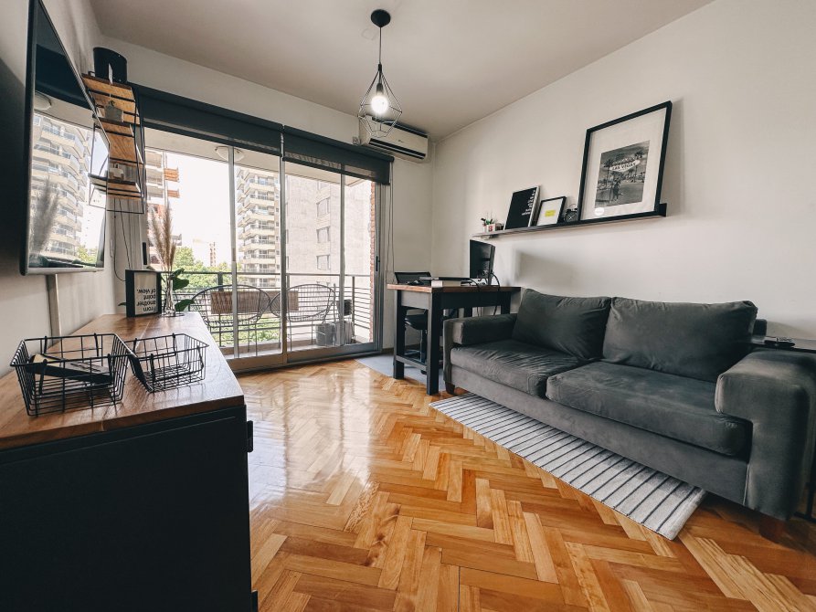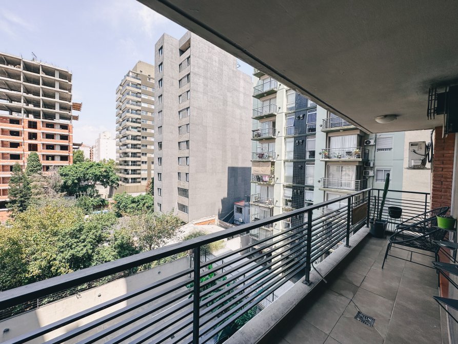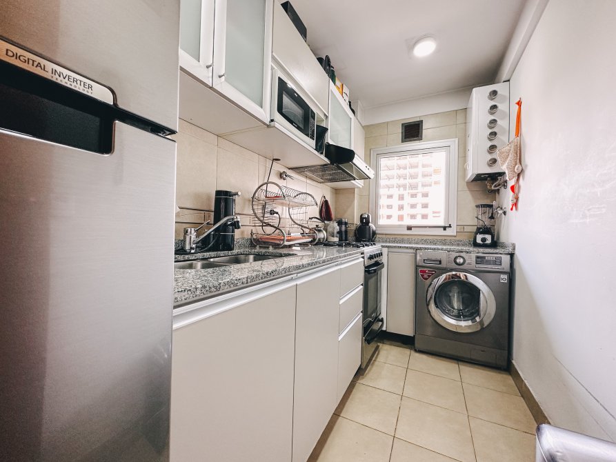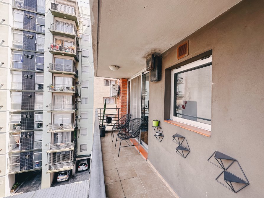 Con una superficie total de 50 m2, de los cuales 45 m2 son cubiertos y cinco m2 descubiertos, este departamento cuenta con dos ambientes que incluyen un dormitorio, dos baños, cocina y gran balcón corrido.