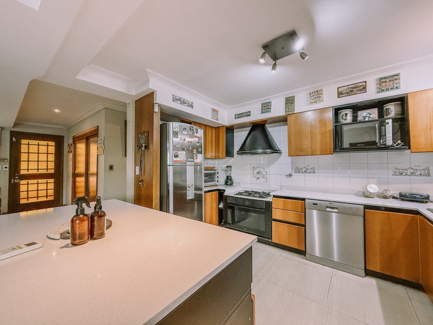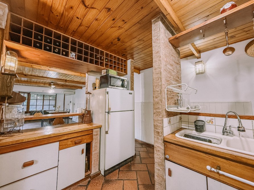- Cocina integrada con muebles sobre y bajo mesada, campana extractora de aire y barra desayunadora espaciosa