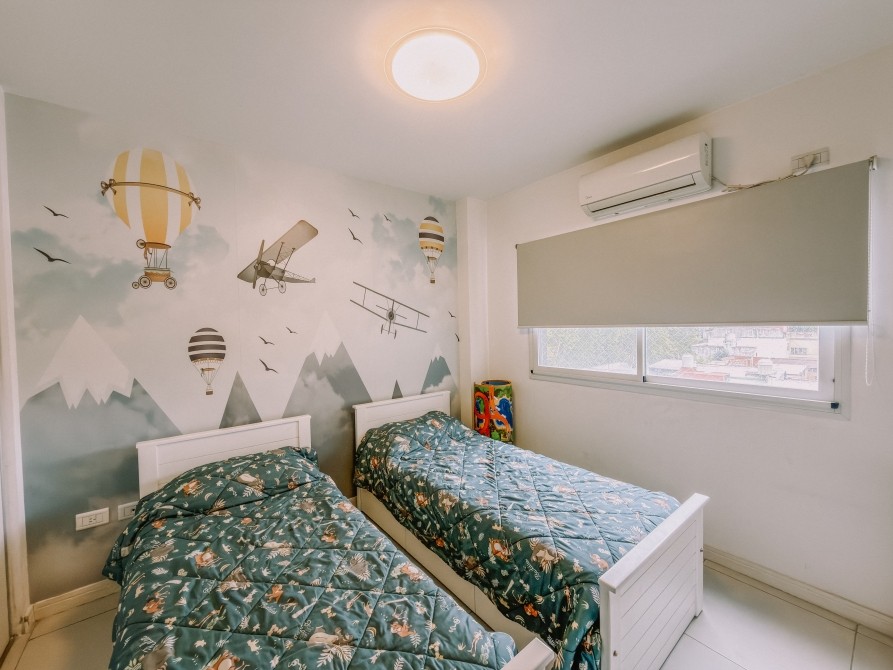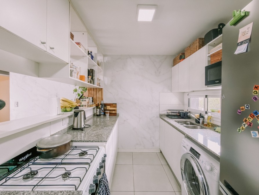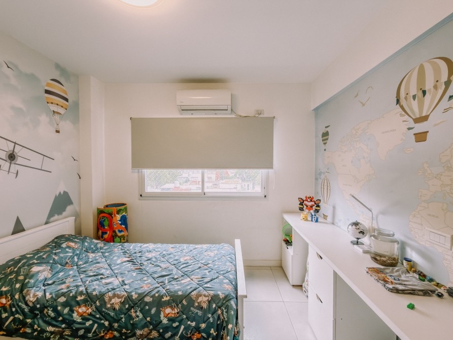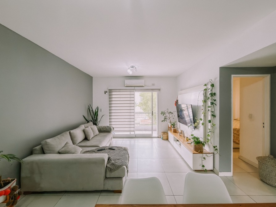 El departamento cuenta con doble orientación, lo que brinda excelente luz natural y ventilación cruzada. Dispone de living comedor con aire acondicionado frío/calor y balcón al frente, cocina equipada con muebles bajo y sobre mesada y conexión para lavarropas.